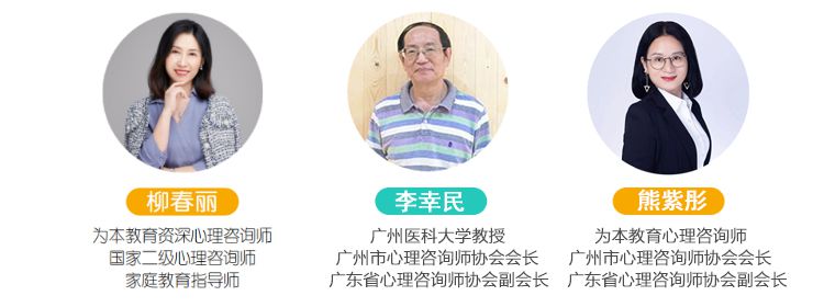 張賽宜為本教研心理專家顧問,為本教研心理專家顧問,美國(guó)NGH催眠治療師。從事大學(xué)高等教育工作20余年,多年來(lái)致力于教育心理學(xué)、犯罪心理學(xué)、婚姻家庭等領(lǐng)域的研究,對(duì)心理健康教育與婚姻家庭教育有深刻的見解和豐富的經(jīng)驗(yàn)。